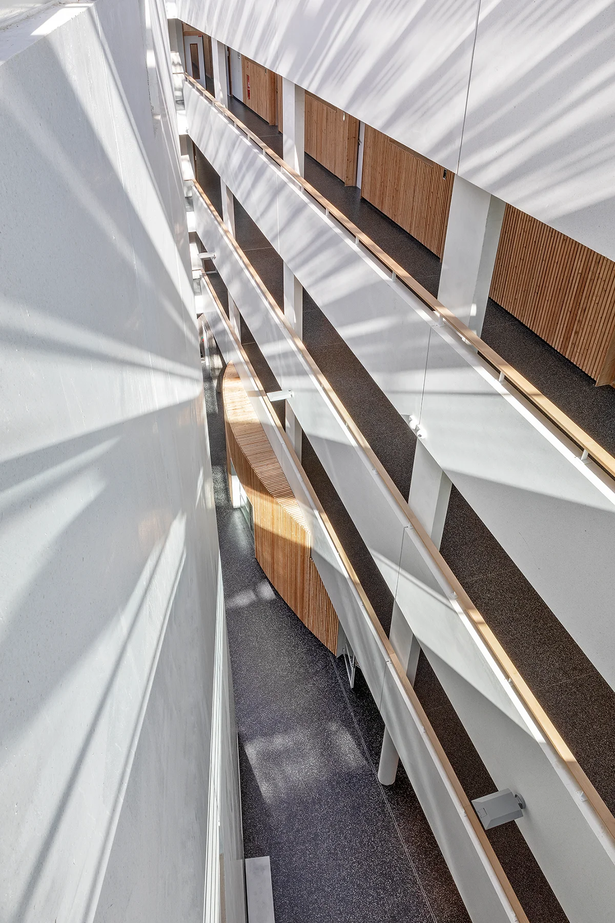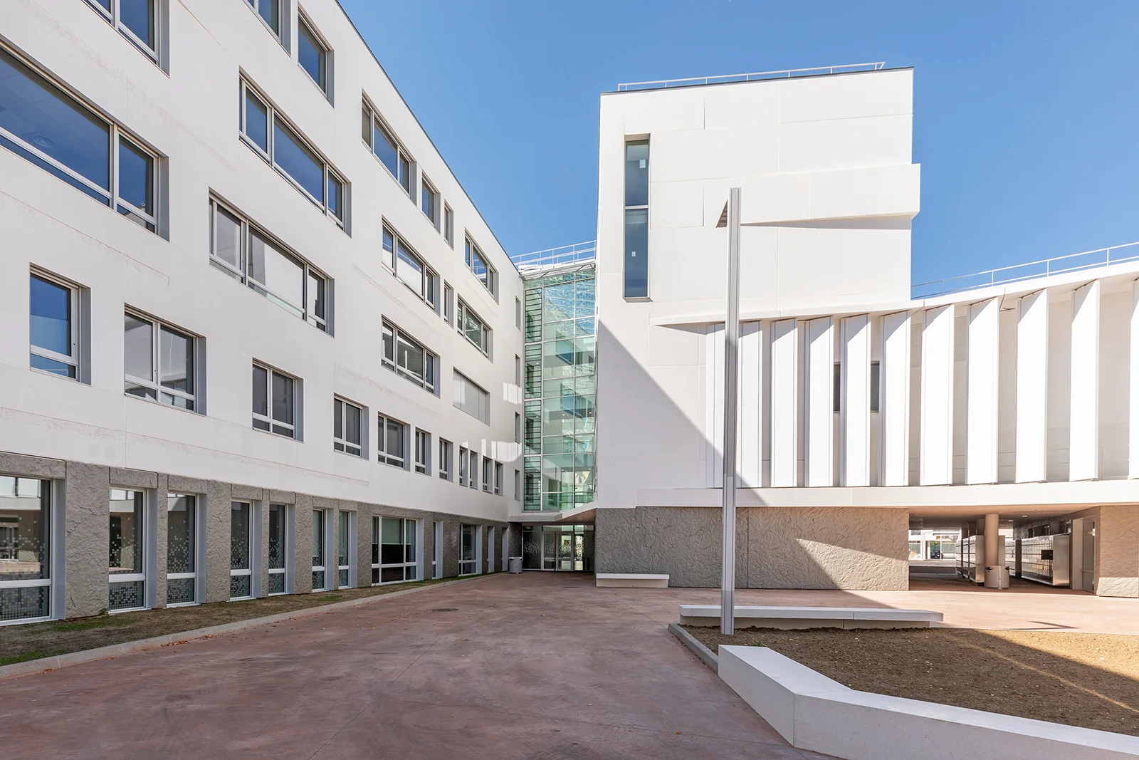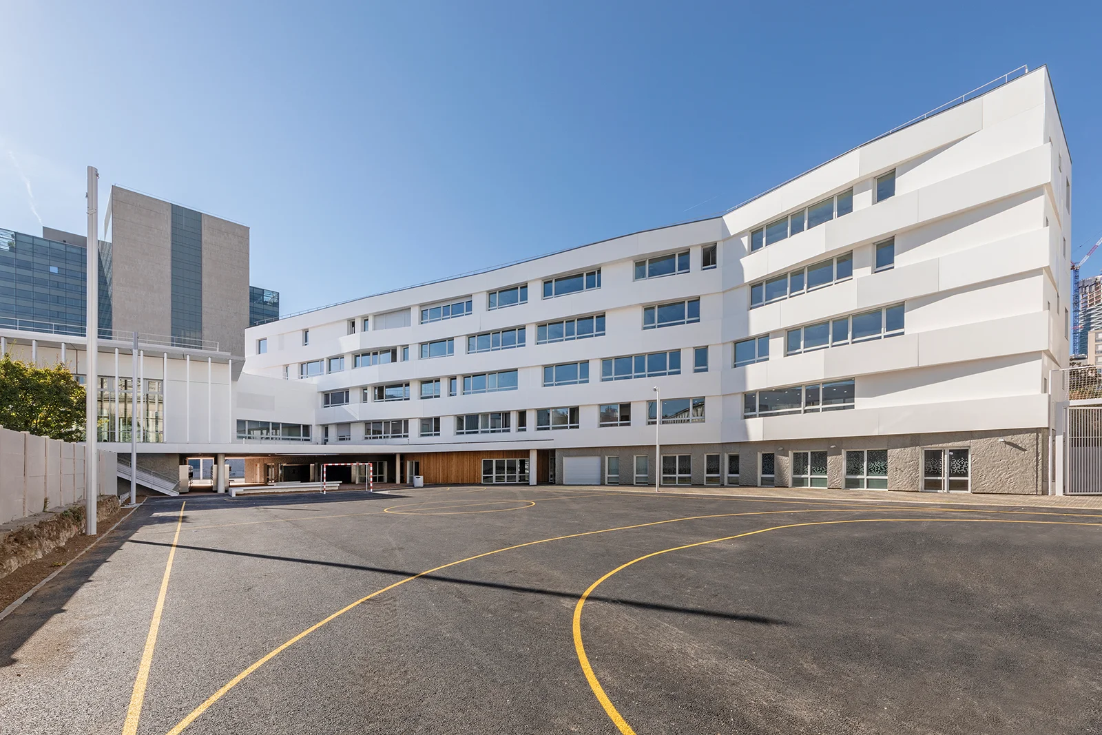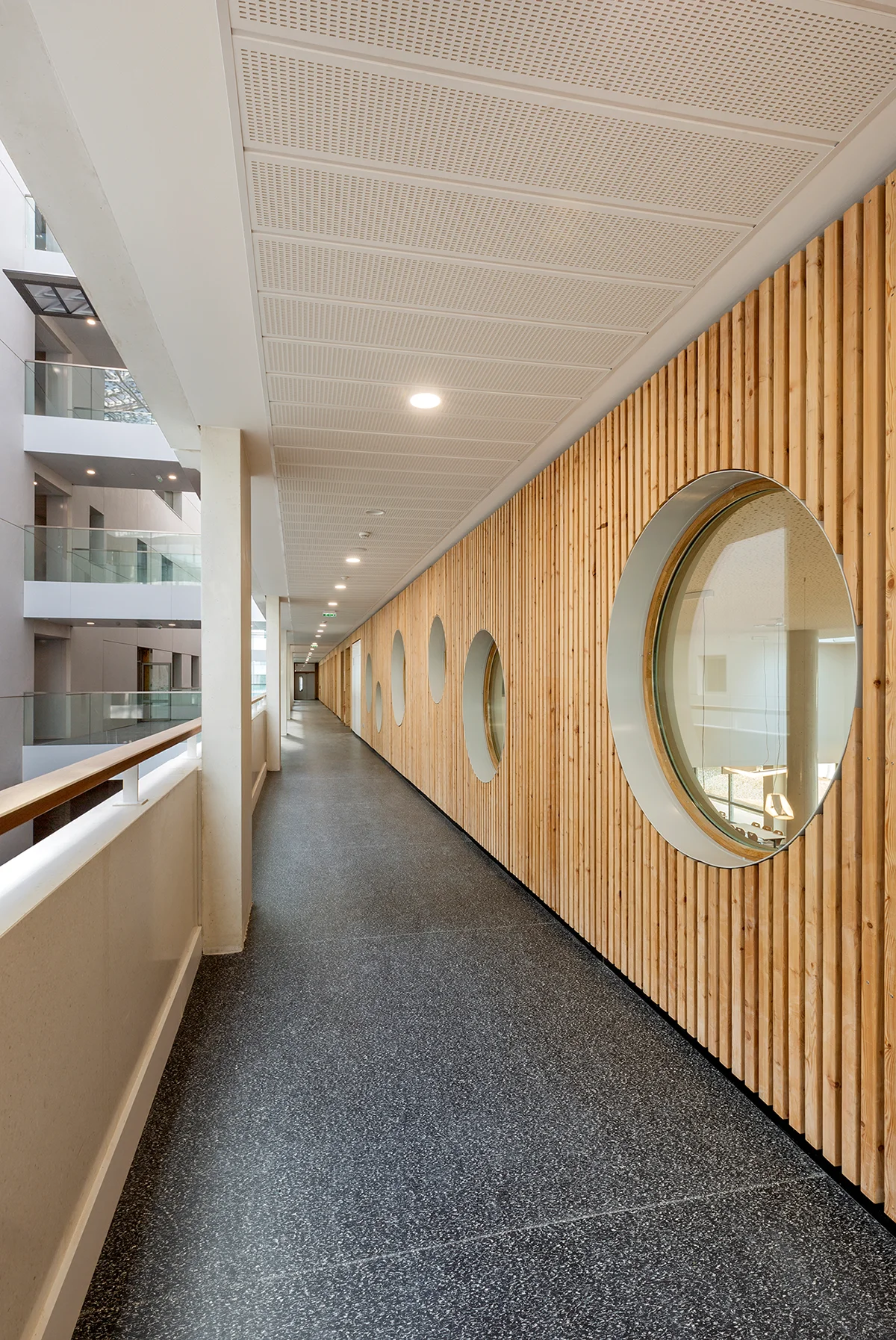 Inspiré des passages parisiens, l’établissement accueille les élèves dans un vaste atrium animé par un jeu d’escaliers et de passerelles, ainsi que par l’utilisation de matériaux chaleureux comme le bois. Mes photographies visent à mettre en lumière les volumes, les circulations et la transparence de cette architecture à l’issue du chantier.